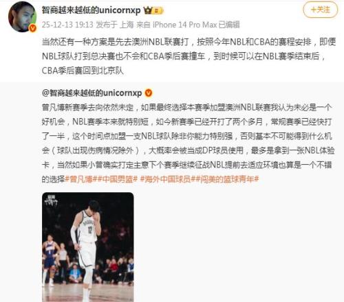 媒体人建议曾凡博先打澳洲NBL等CBA季后赛再回北京男篮争冠