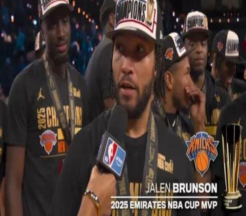 现在,预言成真 尼克斯拿下队史首个NBA杯冠军 大头布伦森喜获NBA杯MVP 成为詹姆斯和字母哥后第三个NBA杯赛MVP
