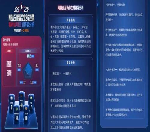 阿里云 AI 并不是简单地把球员数据罗列出来,而是把我选定的这套阵容,当成一个整体结构来处理。它会同时考虑球员之间的空间关系、球权分布、防守协同,以及在不同比赛节奏下,这些变量如何相互影响。 在分析中,我能清楚看到这样一种逻辑被反复强调:当比赛节奏被拉快,这套阵容的进攻效率会迅速被放大,外线投射和突破终结之间会形成明显的正反馈;但与此同时,防守端的轮转成本也会同步上升,一旦节奏下降或者对抗强度提升,稳定性会出现断崖式变化。 这不是一句“好”或“不好”,而是一套条件判断。它告诉我的不是“你该不该这么选”,而是:如果你坚持这种打法,哪些条件必须被持续满足,一旦其中某一项失效,问题会从哪里开始出现。 这一点,对我来说是非常新的体验。 因为过去我对阵容的理解,更多停留在“结果导向”——好不好用、顺不顺、爽不爽。而阿里云 AI 做的事情,是把注意力强行拉回到“过程和结构”上。它不允许你只盯着一个优势,而是迫使你同时面对:这个优势的来源、它的边界,以及它可能带来的连锁反应。 在这个过程中,我第一次清楚地看到:我偏爱的那种快节奏、一大四小的阵容,并不是天然合理的选择,它只是在一组特定前提下成立。而这些前提,以往更多是靠运气和感觉在支撑。 如果再往下拆一层,你会发现,这件事其实并不只是“AI 懂不懂篮球”的问题。 要同时完成这种多条件推演,它背后依赖的是非常稳定的算力支持、持续更新的模型能力,以及能够在短时间内处理大量组合情况的系统调度能力。这也是为什么,这种体验并不是简单做一个数据面板就能实现的,而必须建立在云与 AI 深度结合的基础之上。 从这个角度看,阿里云 AI 在这里扮演的角色,并不是“参与投票”,而是为一种更高质量的判断方式提供运行条件。它让一个原本只能停留在直觉层面的球迷,第一次有机会用接近教练组和分析师的视角,重新审视自己的选择。