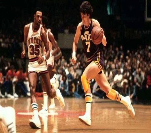 皮特·马拉维奇 退役球队:老鹰队、爵士队和鹈鹕队 关于这位球员,可能很多新球迷都不太熟悉,毕竟这位传奇名宿,早在79-80赛季结束后,就宣布了退役,并且就在退役后的第8年,他就因为身体原因去世。但在当年,绰号“手枪”的马拉维奇,绝对是响当当的人物。 在他出现之前,NBA的球员们都是一板一眼的打球,而马拉维奇却将过去“不入流”的花哨动作,放到了实战之中,吸引了大量的球迷们关注比赛。而且非常了不起的一点是,他在巨人们的时代,也拿到了得分王的头衔,2次入选了最佳第一阵容,5次入选了全明星阵容,是名震一时的NBA第一得分后卫。 所以,虽然没有冠军头衔,但他曾经效力过的老鹰队和爵士队,还是分别退役了他的44号和7号球衣。此外,出于对他在新奥尔良的贡献,鹈鹕队也是非常尊重马拉维奇,哪怕他没有为球队打过任何一场比赛,他的7号球衣也是成功在这里得到了退役。