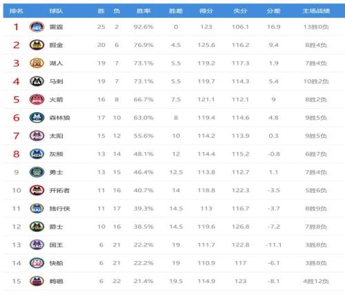 太阳赢球后15胜12负排名西部第七,勇士输球后13胜15负,排名从西部第八掉到第九,今日没有比赛的灰熊躺升排名,来到西部第八。 独行侠主场迎战东部第一的活塞,独行侠缺少了欧文、莱夫利,活塞主力俱在,本以为活塞能拿下比赛,没想到独行侠长时间领先,三节战罢领先12分,第四节活塞追平分差把比赛拖入加时赛,加时赛独行侠更胜一筹,最终以2分优势击败活塞。弗拉格20中8得到23分10板4助3帽,浓眉18中7得到15分14板2助3帽,活塞方面坎宁安30中12得到29分10板9助,杜伦20中8得到17分13板2断。