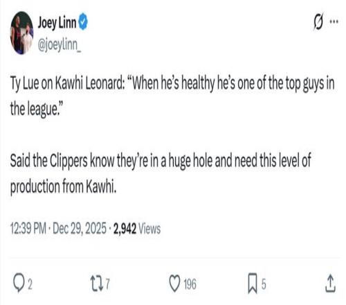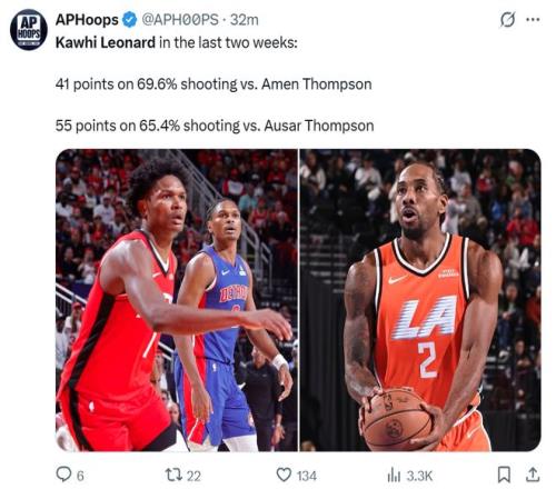 强势征服对手 面对小卡这样的表现,快船主帅泰伦卢自然喜不自胜:“当莱昂纳德保持健康时,他就是这个联盟中最强的球员之一,我们正处于一个巨大的困境中,真的需要他这样的表现。”