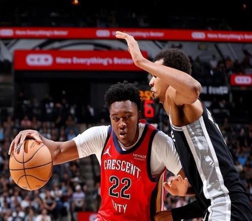 第四位:德里克·奎因 本赛季数据:13.3分、7个篮板、4次助攻和1次抢断 所在球队:新奥尔良鹈鹕队 不得不说,鹈鹕队是有气运加持的,每当球队到了即将摆烂之际,他们总是能够遇到一个天选之子,从当初的克里斯·保罗,到安东尼·戴维斯、蔡恩·威廉森,再到如今的德里克·奎因,可谓天不亡鹈鹕。本赛季,这个21岁的年轻中锋,迅速占据了球队的首发位置,而且很快就融入了球队的战术体系,场均可以贡献13.3分、7个篮板、4次助攻和1次抢断,投篮命中率达到了49.9%。 虽然三分投射尚欠火候,但他却不惧怕,在外线一旦遇到机会,就会坚决出手,让球迷们非常兴奋。在12月,他5次拿到了三双,其中还包括了那一次33分、10个篮板、10次助攻和4次盖帽的豪华三双。所以一些媒体也是曝出,球队已经打算将蔡恩·威廉森送走,全力围绕奎因重建。可能这样的报道稍显夸张,但从另外一个层面来看,这无疑是对本赛季奎因出色发挥的一种肯定。