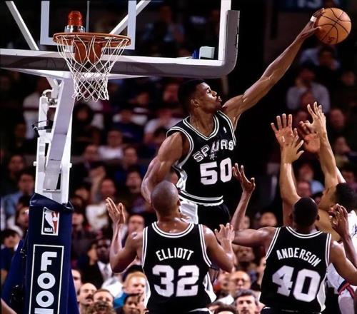1987年22岁的大卫-罗宾逊参加选秀大会,马刺用状元签将其摘下,之后罗宾逊去海军服役两年,1989年才正式登陆NBA,他也因此得到了“海军上将”的外号。上将身高214cm,他在马刺效力至退役,为马刺拿下两个总冠军,自己也拿下一个MVP,一个最佳防守球员,一个最佳新秀,入选过四次一阵、四次一防、10次全明星,得分王、篮板王、盖帽王他也分别获得过一次。 2009年罗宾逊入选了名人堂,他也是50大巨星、75大巨星。上将在14年的NBA生涯中出战987场常规赛,场均21.1分10.6篮板,投篮命中率为51.8%,场均盖帽为3次,排在历史第五,生涯总盖帽数则是历史第六,盖帽总数为2954次。