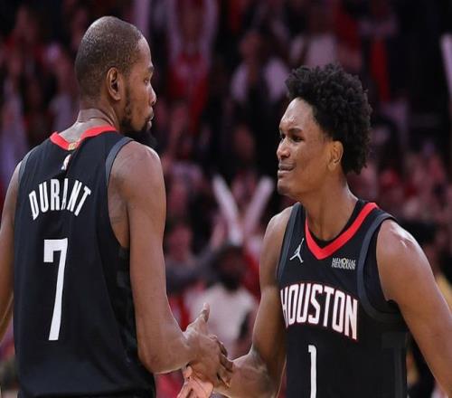 上个月,杜兰特成为联盟第八位生涯总得分突破31000分的球员,他坦言,能够与勒布朗-詹姆斯、阿卜杜尔-贾巴尔、卡尔-马龙、科比-布莱恩特、迈克尔-乔丹、诺维茨基和张伯伦并肩,对他意义重大。 “刚进入联盟时,你会把这些人视为英雄,把他们捧上神坛。”杜兰特说,“你会觉得,他们的成就有时是遥不可及的。” 如今,作为火箭队的老将领袖,杜兰特成了现任队友们的偶像,就像当年那些传奇球星曾是他的偶像一样。2007年秋天,杜兰特代表早已搬迁的西雅图超音速队完成NBA首秀时,史密斯和阿门-汤普森才4岁。他们一辈子都在看杜兰特打球,而过去几个月,他们终于圆梦,成为了他的队友。 史密斯称,这种感觉就像“小孩子进了糖果店”。