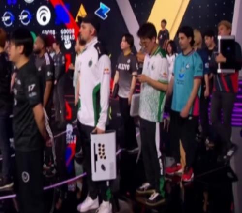 电竞新闻08月21日讯 EWC电竞世界杯街霸6项目开场,Xiaohai曾卓君作为卫冕冠军出场站在中央,检阅今年其他47名选手。 其中发生了一个小插曲,台上同为国手的DCQ,在仪式中没有像其他选手一样立正,而是在这样的场合选择低头看手机。 |