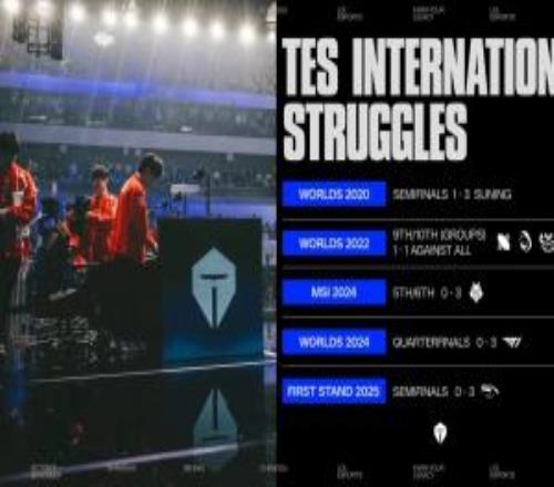 电竞新闻10月15日讯 LOL英文流列出TES国际赛惨淡成绩,并配文“他们能否打破诅咒?” 2020全球总决赛:1-3不敌SN止步半决赛 2022全球总决赛:9-10名(小组赛3胜3负,和GAM、DRX、RGE全部战成1-1) 2024季中冠军赛:0-3不敌G2止步5-6名 2024全球总决赛:0-3不敌T1止步八强 2025全球先锋赛:0-3不敌HLE止步半决赛 |