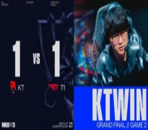 电竞新闻11月9日讯 2025全球总决赛冠亚军决赛,由KT对阵T1! 第二局Faker塞拉斯对阵Bdd梅尔。前期中路2v2,Cuzz蔚锁头Oner皇子后再杀Faker,T1连拿两条小龙但KT经济领先4k。 中期中路团战Faker塞拉斯隔墙拉到Cuzz蔚将其融化,多兰赛恩卡视野大斧子开团,Bdd梅尔双杀后小吕布Ez开杀,T1团灭KT。紧接着Faker塞拉斯用妮蔻大招开团,Bdd梅尔双杀+双杀伪四杀疯狂收割,KT团灭T1后吃到厄塔汗,经济领先4k。 后期大龙团Faker率先睡着,Bdd梅尔带队入侵T1野区逮捕Keria璐璐,KT轻松拿到大龙后经济优势逐渐来到1w。最终KT逐步蚕食T1中下两座水晶,多兰自家野区开车撞墙送KT第二条大龙,最终KT一波推平T1基地扳回一城。 POG: 赛后数据: 选手阵容: KT:PerfecT、Cuzz、Bdd、deokdam、Peter T1:Doran、Oner、Faker、Gumayusi、Keria 第一局: |