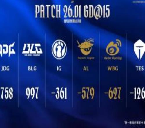 官方发布登峰组6支战队场均对线期经济差:JDG排名第一