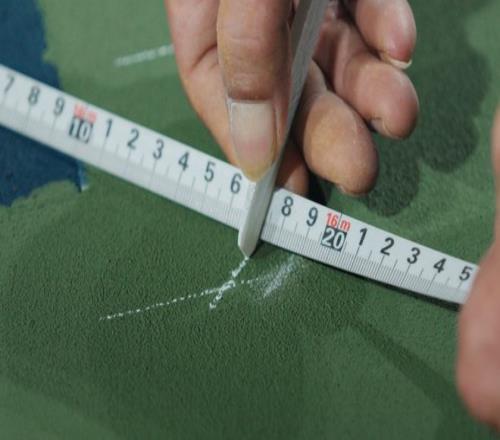 翻新球场是一项和天气抢时间的工作。中午太热,湿料倒在地上干得太快,不好找平。这样一来,工人们清早四五点钟就要开工,赶在日头上来前铺好湿料,傍晚再继续,「一定是一早一晚做」,刘运智说。她记得,有一年,有两三片场地的沥青全拱了起来,工人们还得在最热的中午趁着沥青软化用铁板把拱起的地方敲下去。 但没有日头也是难题。 今年,上海的降雨量格外多,这是本次翻新最大的挑战。雨季绵长既不利于开展涂料工作,涂料也很难在短时间内自然晾干。但工期是固定的,要按时把场地交给赛事主办方,工人们就要加班加点,能多铺一点就是一点。 作为现场的一线工程师,沈工对工期一向敏感,他说,从接手球场到球场交付,前后一共45天,每一天的现场工作都被严格规划,「大师赛时间定好了,不会因为任何人员因素、天气因素而改变」,沈工说。 沈工记得,8月初,台风过境,有一周多的时间,球场开工的时间都不稳定。眼瞅着工期受阻,但即便是这样的时候,整个团队都没有慌乱。沈工会把工程量和工程计划排布到最仔细,「这段时间,面层大概要完成到什么情况,每天要干几片场地,会提前一天排布好。」 精细的计划和团队执行让翻新工作始终保持在行进中。沈工说:「基本都在可控范围内。」 除了天气,刘运智和团队还要面对地面带来的「刁难」。 旗忠球场的土质条件有限,地面的平整度会受影响。特别是2号场地,刘运智和沈工都对这块场地印象格外深刻,它总是下沉、出现凹陷。直到划线交付前,工人们要来来回回修补,对耐心也是极大的考验。 工期截止在即,球场开始进行最终的试球了。 不久前,刘运智的膝盖受伤,走路吃力了一点,但她还是亲自来到球场完成整个测试过程。测试开始后,她拿着尺子来回比量——球场的地面有没有铺平,面层有没有鼓包、脱皮,还有弹跳等,每一个细节都不能放过。