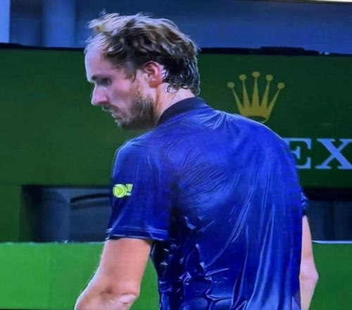 最近上海举办了网球大师赛,但选手们热坏了。 梅德韦杰夫没打多久就跟落汤鸡一样。