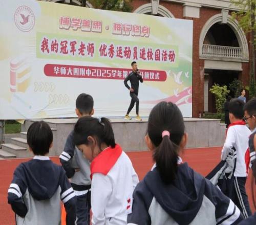 2025年《我的冠军老师—优秀运动员进校园》活动第11站,“马拉松进校园”如约而至,国内首位同时获得世界田联与美国田协最高级教练认证的陈金洋老师,走进华东师范大学第四附属中学,为同学们带来一场关于奔跑、坚持与成长的深刻启迪。 华东师大四附中是由普陀区人民政府与华东师范大学共同创办的公办九年一贯制学校。学校秉承 “博学善思,雅行修身” 的办学理念,以 “管理高效率、师资高水平、学生高素质,办学有特色,建设国内知名上海一流的优质学校” 为目标,先后荣获全国文明校园、全国青少年校园篮球体育传统特色学校、上海市首批新优质学校等多项荣誉。 学校深耕体育教育,特色项目成果显著:皮划艇队在上海市青少年体育精英系列赛中,斩获单人项目前三名、双人项目季军,助力普陀区队夺得市级团体亚军;攀岩队在区级赛事中,包揽混合团体冠军、女子速度接力冠军及男子个人冠军;跳绳选手在世界赛事中摘得女子单项第一名,勇士挑战队亦斩获区级团体冠军,充分展现学校体育教育的扎实成效与育人价值。 作为区域体育特色示范校,学校高度重视学生体质健康与运动习惯养成,构建了“基础+拓展+特色”三级体育课程体系。在日常教学中,不仅开足开齐体育课,更开设龙舟、攀岩、跳水等特色项目,丰富学生运动体验。每年组织校园迷你马拉松、冬季长跑等活动,鼓励学生在奔跑中锤炼意志,在挑战中超越自我,真正践行“让运动成为一生的必修课”的健康理念。 本次活动在秋日中拉开帷幕。八位小朋友在门口迎接陈老师,由副校长薛滢给冠军老师讲解学校里的体育活动,并参观学校体育设施。 来到操场后,陈老师为500名学生在操场上带来了一节“冠军体育课”。课程分为三个阶段:热身、激活与专项训练。陈老师亲自带领大家进行膝关节环绕、韧带拉伸,细致讲解正确跑姿—“身体微微前倾,步幅适中,落地轻盈”。随后组织绕圈慢跑,在过程中不断纠正学生的动作,提醒节奏与呼吸的配合。最后,在体育老师的带领下,全体学生在操场上以班级为单位,集体跑操。操场上,脚步声与欢笑声交织,青春的身影在阳光下跃动。那一刻,体育不再是竞技场上的胜负,而是生命成长中最动人的旋律。 接着同学们来到报告厅,与陈老师开启了一次冠军课堂。华东师范大学第四附属中学党总支书记王萍深情寄语:“体育不仅是强身健体的手段,更是立德树人的载体。陈金洋老师带来的不仅是一堂课,更是一种信念的传递。”她勉励同学们以冠军为榜样,在奔跑中读懂坚持的意义,在汗水中感悟成长的力量,并强调学校始终坚持“健康第一”的教育理念,努力让每一个孩子都能在体育中找到属于自己的节奏与光芒。 随后,主持人率先提问:“您是国内首位获得世界田联和美国田协最高级教练认证的专家,这份荣耀背后,有没有让您记忆深刻的挑战?”陈老师微笑着回应:“最难的不是考试本身,而是如何把复杂的运动科学讲得通俗易懂,让孩子们听懂、愿意练。这个过程需要不断学习、交流和分享。”他特别强调,“考核只是结果,真正的价值在于积累的过程,在于你是否真正理解了跑步的本质。” 当被问及“马拉松的魅力究竟在哪里”时,陈老师目光坚定:“它是一场对生理和心理双重极限的挑战。42.195公里,不是靠天赋跑完的,而是靠一天天的坚持、一次次的突破拼出来的。它教会我们:只要不停下脚步,终点终会到达。” 对于“如何指导青少年接触马拉松”,陈老师分享道:“很多孩子觉得跑步枯燥,我会带他们去风景优美的地方跑,听喜欢的音乐,设定小目标。关键是让他们感受到乐趣,养成习惯比追求成绩更重要。”他还动情地回忆:“有一次带一群学生完成人生第一个半马,最后几公里大家都快走不动了,但彼此搀扶、喊着口号冲过终点。那一刻,我真正明白了体育的意义——不是赢,而是不放弃。” 面对同学“400米测试如何提升”的提问,陈老师专业解答:“先充分热身,再通过间歇跑提升耐力与速度。比如跑200米快+200米慢,重复几组,效果非常明显。”有同学提到“长跑时膝盖疼”,他建议:“适当减少距离,同时加强腿部力量训练,比如深蹲、弓步走,保护关节比强行坚持更重要。”还有人问“跑步时身体晃动怎么办”,他耐心指导:“摆臂要到位,控制肩部活动,等身体发育更成熟后,可以加入核心稳定性训练。” 最令人动容的是关于“如何调整呼吸”的问题,陈老师现场示范:“可以练习吹气球来增强肺活量,跑步时用鼻子吸气、嘴巴呼气,这样能提高摄氧效率,跑得更轻松。”他笑着说:“别小看这些细节,它们往往是决定你能跑多远的关键。” 互动环节结束后,进入温馨的互赠礼物仪式。副校长黄珍青代表学校向陈金洋老师赠送了镌刻着校训的纪念奖牌,象征着对体育精神的传承与致敬;陈老师则回赠了一件亲笔签名的T恤,将鼓励与期许传递给每一位学子。 双方合影留念,镜头定格下这一充满温情与力量的瞬间。愿每一位少年都能在体育的光照下,找到属于自己的节奏,勇敢奔赴人生的赛道,跑出属于自己的精彩篇章。 本次活动是2025年的第十一站,在上海市体育局的指导下,五星体育以团支部牵头,各个部门通力合作,这一年里《我的冠军老师—优秀运动员进校园》将体育精神、体育文化、体育冠军带到校园里,带到青少年们的身边。未来,五星体育还将