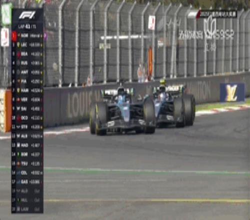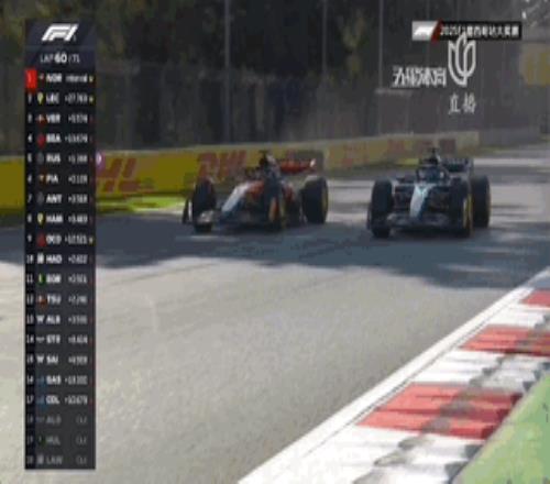 第60圈,皮亚斯特里再次追到拉塞尔身后!前者在一号弯的尽头利用DRS完成超越!这次超越非常犀利且很有胆识!