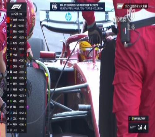 第23圈,安东内利进站换上黄胎。第24圈,汉密尔顿进站完成换胎的同时执行10秒罚时。