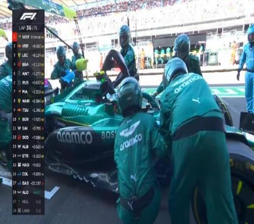 第三十五圈:领跑的诺里斯进站换上中性胎,出站后他仍领先维斯塔潘8秒