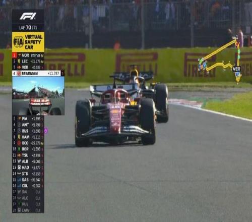 第六十五圈:维斯塔潘追近勒克莱尔,皮亚斯特里也已经很接近贝尔曼