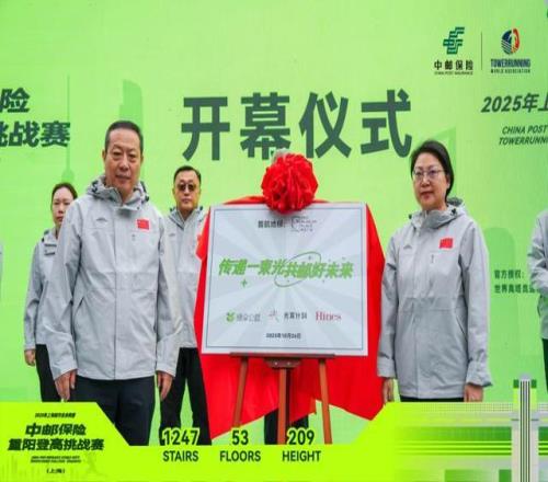 秋高气爽,重阳将至。继10月23日晚中邮保险上海亮灯仪式后,今天上午,由中邮人寿保险股份有限公司、上海市静安区体育总会主办,上海城市业余联赛组委会、市社会体育管理中心指导,世界高塔竞速协会官方授权的2025中邮保险重阳登高挑战赛在上海博华广场活力开赛。 中邮保险董事长韩广岳、业务总监曹勇,上海市邮政分公司总经理李柏平、邮储分行副行长高文、中邮保险分公司总经理薛刚,四届奥运跳水冠军吴敏霞、上海市静安区体育局局长马嘉槟、市社会体育管理中心副主任李易飞,汉斯中国区负责人、博华广场总经理贺喜霞等出席赛事开幕式并共同为赛事发令。