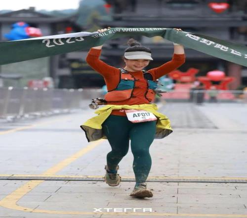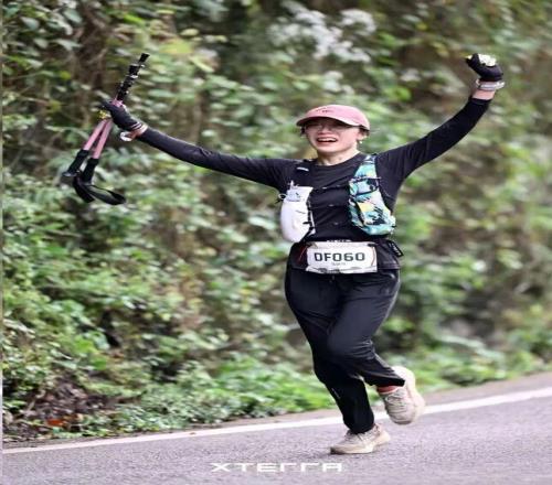当吴晶瑶站在XTERRA张家界站30公里组的起跑线前时,这不仅是她为自己庆祝生日的方式,更是一场迟到一年的自我挑战。作为一名工作繁忙的战略咨询顾问,吴晶瑶早已习惯了在奔跑中寻找平衡。而这一次,她的目标格外清晰:顺利完成一场超过半马距离的越野赛,弥补去年在黄山35公里比赛中因过于疲惫而退赛的遗憾。 因此,当她看到张家界站的比赛日恰好是自己生日时,她便决定“借生日的由头,挑战一下自己”,一定要完成一次超半马距离的越野,也将此次比赛作为和家人的共享旅程——她跑越野赛时,母亲总是会陪着她。为了这场意义非凡的30公里生日挑战,她做足了准备——不仅增加了跑量,还在国庆节特意去杭州标毅线拉练,提 前感受1500米爬升的强度。 比赛日,天公不作美,连绵的阴雨让赛道变得湿滑泥泞,也为比赛增添了更多不确定性。吴晶瑶将目标从追求速度调整为安全完赛。然而,张家界的赛道却在雨中回馈给她意想不到的惊喜。赛道设计的丰富性远超她的预期,原始森林、竹林、干涸的溪流、土路与石阶交错,许多路段是普通游客难以触及的秘境。 “我们能够感受到当地村民的淳朴,以及他们日常所看到的风景,”这种深入山野的体验让她倍感珍贵。更幸运的是,比赛日当天,前一天还被大雾笼罩的公路赛段,竟展现出清晰壮丽的风景,让她得以将武陵源的美景尽收眼底。