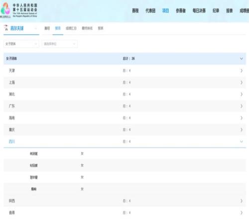 刘宇婕出现在第十五届全运会高尔夫女子团体赛四川队报名名单里。 |