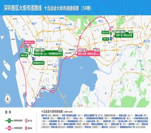 深圳 深圳站火炬传递深圳站路线采用“三站联程・山海连城”设计,路线全长45公里,其中陆路5公里、空路40公里,呼应深圳经济特区45周年历程。围绕致敬深圳经济特区建立45周年,突出粤港澳大湾区融合发展,聚焦“致敬特区45周年历程的改革之路、展现特区高质量发展的未来之路、书写粤港澳大湾区图景的融合之路、彰显人与自然和谐共生的生态之路”四大设计理念。11月2日,火炬将从莲花山公园空中连廊启程,登上直升机空传至前海石公园,最终抵达前海国际会议中心。