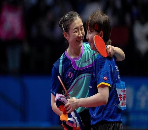 朱雨玲与陈梦。 全运场,再相逢 “现在感觉自己还没打够,还想再打两局。如果没记错,我们是同一天获得的世界冠军,也是同一天拿到了亚运会的女双冠军,我们在一起配合了太多的比赛,我们又是曾经的室友、队友,我整个国家队的职业生涯都由她来陪伴。我们互相鼓励着、互相良性竞争,也成就了彼此。” 赛后的混采区,朱雨玲娓娓道来,即便这是她在混采区停留的第30分钟。 朱雨玲有一种魔力,你总能从她的发言中感受到时间的维度,这一次同样如此。 朱雨玲口中的“同一天世界冠军”,是2014年世乒赛的女团冠军,口中的“亚运会女双冠军”,是同一年的仁川亚运会女双冠军。 彼时的二人,是国乒女队最被看好的潜力新星,是丁宁、李晓霞和刘诗雯身后的追赶者。 相比1994年出生的陈梦,小一岁的朱雨玲反而是蹿升更快的一方。15岁进入国家队不到一年,她就在世青赛包揽女单和女双两枚金牌,成为了世青赛有史以来最年轻的女单冠军。而陈梦直到2011年,才收获世青赛女团、女单、女双和混双冠军。
