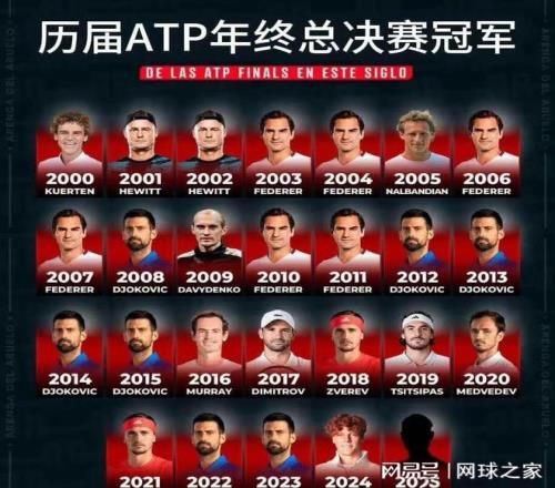 年终总决赛早已硝烟散去,在最终的决赛中,卫冕冠军辛纳发挥出色,击败首次进入该项赛事冠亚军争夺战的年终世界第一阿卡,卫冕成功。 加上前两年卫冕成功的德约,近四年的该项赛事都出现了连庄的情况,但这项赛事在历史上也并不是经常有如此般稳定。