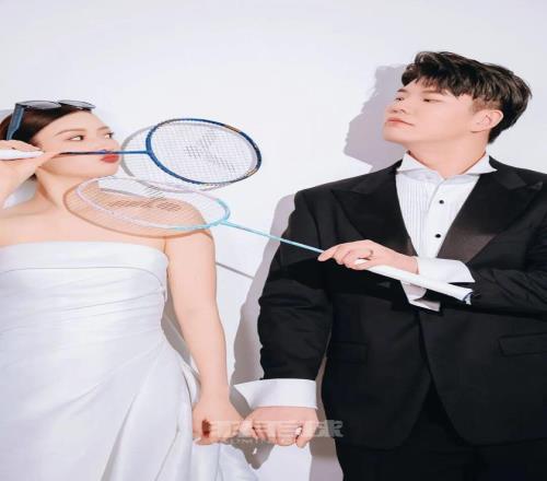 10月31日,刘雨辰赶着早班机飞往浙江衢州,参加雅琼运动馆的开馆剪彩;他搭档雅琼与老友谭强、汤金华一起打了混双表演赛;隔天一早,二人又一起飞回北京。他们要在赶赴全运会报道前的48小时里,进行线上婚礼方案讨论、完成婚宴试菜,以及拍摄两个人的婚纱照…… 尽管他们在和时间赛跑,但或许是常年的训练有素,一切都在有序地推进。他们在落地北京后的回家路上,带上耳机,就婚礼现场的布置与设想进行了又一轮线上沟通。三组方案中,他们不约而同选择了彼此喜欢的蓝色深海主题。当晚,他们约着朋友一起品鉴了婚宴的试菜,至于菜肴口味的审核标准他们大笑着说,“和我们什刹海的食堂比起来,好吃吗?” 考虑到出席婚宴的大家来自全国各地,菜色上他们希望风味多样化。因为翌日要拍婚纱照,雅琼也不敢“畅吃”。不过,看到婚宴的场地,她迅速选出婚礼当天要用的桌布颜色。试吃之余,雅琼和雨辰就婚礼伴手礼达成了最终确认。“你看,伴手礼我选了这个,它有好几种款式,到时候大家可以现场开拍。”雅琼将手机递给朋友看,脸上露出了期待的笑容。 隔天在婚纱照拍摄现场,雅琼身着白色婚纱温婉可人,一身笔挺西装的雨辰则是尽显绅士本色。镜头前他们互动自如,无须摄影师过多引导,眼神交汇之际,总能心领神会对方的想法。