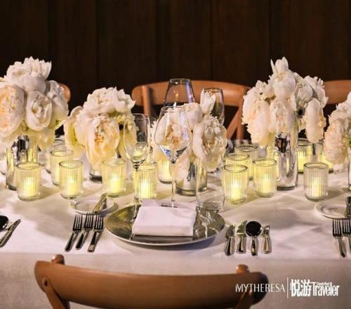 随着明信片的线索被串联,我们正式步入由悦游Condé Nast Traveler与Mytheresa打造的après-ski限时体验空间。日落后,松花湖的天色从湛蓝渐变为深邃的靛蓝,欢聚的场域从开阔的雪场转向温暖的室内。