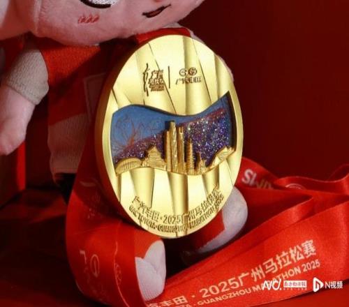 奖牌背面。南都N视频记者 梁炜培 摄 这枚奖牌不仅是赛事荣誉的象征,更是广州地域文化的微观表达,每一次佩戴都是对城市印象的鲜活诠释,寓意来自世界各地的跑者会聚于此、交流交融,共赴一场见证大湾区活力、广州城市底蕴与运动激情的奔跑盛宴。