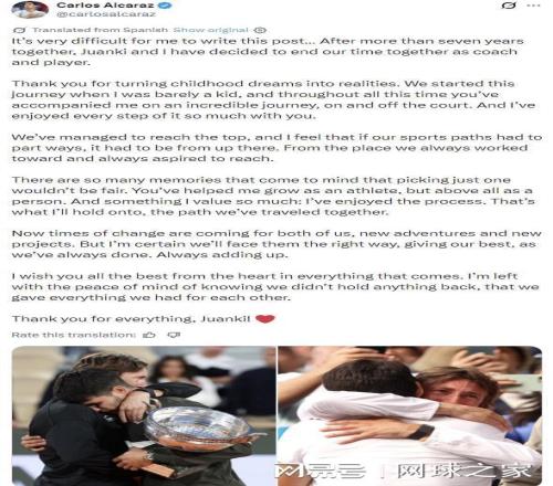 在商业化日益浓重的职业体育世界,阿尔卡拉斯这篇充满人情味的告别信显得尤为珍贵。没有冰冷的官方声明,没有刻意回避情感,他用真诚的文字记录了一段旅程的结束:“我会永远珍惜我们共同走过的这段旅程。” 这封告别信提醒我们,体育不仅仅是胜负和纪录,更是人与人之间深刻的联系、成长的故事和情感的交流。阿尔卡拉斯与费雷罗的故事,已经超越了普通的师徒合作,成为网球史上一段值得铭记的篇章。