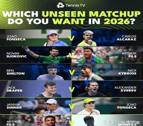 还有不到两天的时间,我们就将迎来崭新的2026赛季。展望新赛季,你最期待看到哪一组对决呢?以下是还没有进行过对决的几组球员。 丰塞卡 vs 阿尔卡拉斯 超人气新星对阵当红炸子鸡!阿尔卡拉斯自不必多说,有他在,场面的精彩度是有保障的;而巴西人气王也已经通过本赛季的磨砺,成功从新人一跃成为双冠王,算是对其人气居高不下兑现了部分天赋。