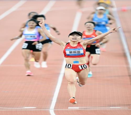 全运会对每一位专业队选手的意义不言而喻。自从2019年进入河南队,梁田田就知道,自己需要金牌——不仅是证明实力,也是要改变在队中的处境,比如获得编制和更好的发展。梁田田也想赚钱补贴家用,在家里,有辛苦劳作的爸妈,还有双胞胎弟弟和小她10岁的妹妹以及行动不太方便的爷爷。 对梁田田而言,让自己在过去四年漫长而重复的坚持下去,最大的动力就是——全运会冠军,而且她的目标一直就是5000米和10000米两枚金牌。 2024年在杭州进行了一站全国冠军赛,那时跟跟梁田田聊到日常训练时,她说道,不管是在凤凰岭还是青海多巴基地训练,很多时候练完后累到饭也吃不进去,话也不想多说。 在全运会前,参加全国比赛的梁田田 身体疲惫到极致时,梁田田偶尔也会产生些许动摇——因为这个过程实在太过艰难。但她说,那种状况下,脑海中有另一个自己跳出来,把因为痛苦而想放弃的自己拉回现实中。她知道,自己待解锁的任务和终极目标都没完成。她始终告诉自己——我必须拿到金牌,再多的苦,都得咽下去。 梁田田有一个特质,就是不紧张。不管是初出茅庐参加第一场国家级别的比赛,还是今年出发广州参加人生第一次全运会,她都毫不紧张。临近全运会的日子,她内心唯一的波澜来自于——比赛怎么还不开始。她迫不及待想站上赛场。 回顾在广州进行的全运会,5000米和1万米两个项目,哪场对梁田田更难一些?她的回答是:如果5000米拿到金牌,她坚信自己1万米也可以拿到。这种感觉就像武侠小说,打通第一关后,第二关就万山无阻了。