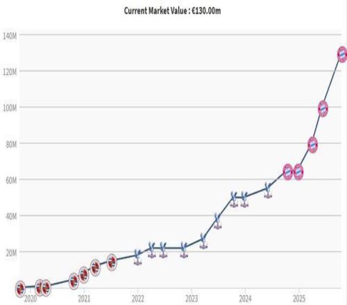 去年12月时,奥利塞的德转身价为6500万欧,在近10个月里的三次更新,奥利塞的身价分别上涨1500万欧、2000万欧、3000万欧,不到一年时间身价翻倍至1.3亿欧。 在德甲和拜仁队内,奥利塞的身价仅次于穆西亚拉(1.4亿欧)。在全球范围内,奥利塞排在身价榜第10位。 在右边锋位置,奥利塞的身价位居第三,仅落后亚马尔(2亿欧)、萨卡(1.5亿欧)。 |