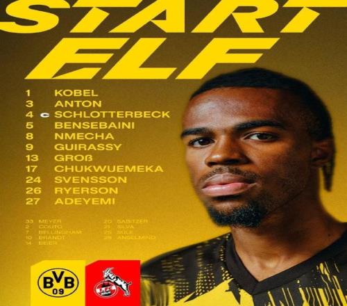 多特vs科隆:阿德耶米、吉拉西首发,丘库埃梅卡、格罗斯出战