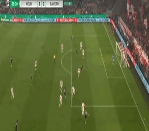 第12分钟,拜仁后防线出现险情,约翰内松获得绝佳机会,乌尔比希飞身将球扑出。2分钟之后,科隆再次通过角球制造威胁,约翰内松传中,马赫门飞身头槌攻门,乌尔比希连续关键扑救。 第19分钟,拜仁还以颜色,迪亚斯左路高速突破,禁区内晃开角度低射近角,齐勒及时倒地完成封堵。 第31分钟,科隆率先破门: