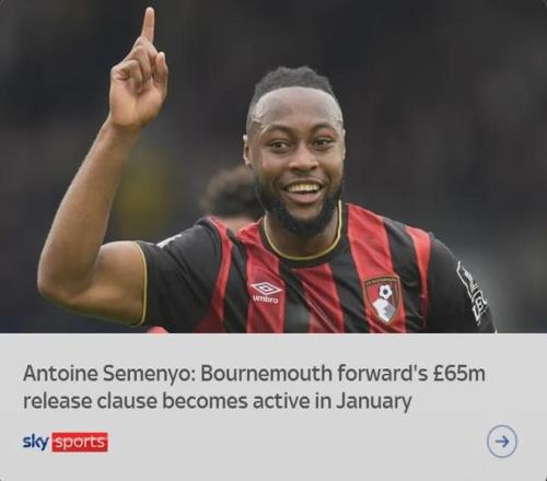 天空体育消息,塞梅约和伯恩茅斯的合同中有价值6500万英镑的违约金条款,且明年一月份就会生效。 报道称,塞梅约的违约金为6000万英镑加500万浮动,但该违约金条款只会在一月份的某个特定日期生效,而到了2026年夏天,这个违约金的数额还将下降。 此外,一旦塞梅约转会,布里斯托城还将得到转会费的20%,据悉曼城、利物浦和热刺都在关注这名边锋的情况。 TA记者DO发文报道了同样的消息,他声称塞梅约的违约金条款可以在一月份特定的日期激活(对任何球队都有效),这样伯恩茅斯将有时间寻找替代者,而夏天时6500万英镑的违约金将下调。