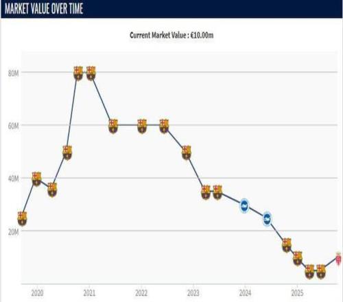 法蒂身价上涨至1000万欧,巅峰身价是18岁的8000万欧