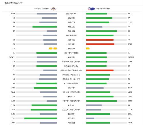 第28分钟,比卡尔奥射门中框,佐伯补射破门,卡拉巴赫1-0哥本哈根