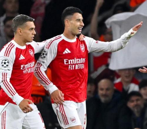 体坛周报全媒体原创 今晨欧冠联赛阶段第2轮,阿森纳主场2比0击败奥林匹亚科斯。马丁内利延续近期良好门前感觉,收获各线近5场第3球,替补出场的萨卡斩获本季各项赛事第2球。全场阿森纳优势明显,控球61%,射门16比10,预期进球2.73比0.51。 阿森纳2比0奥林匹亚科斯 13’马丁内利、90+2’萨卡 2’刘易斯-斯凯利传中,马丁内利头球攻门偏出。 13’厄德高直塞,哲凯赖什射门中柱,马丁内利补射破门,阿森纳1比0。 20’波登塞凌空射门,拉亚做出精彩扑救。 41’特罗萨尔外脚背妙传,哲凯赖什扣过后卫射高。 53’梅里诺传球,特罗萨尔射高。 65’厄德高分球,特罗萨尔试图晃开角度但射门被挡。 66’卡比越位位置头球攻门被拉亚扑出,希基尼奥补射破门,进球无效。 82’萨卡右路突破下底横传,厄德高面对绝佳机会连续2次射门均被封挡。 90+2’厄德高直塞,萨卡劲射击穿门将小门入网,阿森纳2比0。 【数说】 【0】算上上赛季,阿森纳在欧冠联赛阶段主场5战全胜且不失一球: 2比0巴黎圣日耳曼 1比0顿涅茨克矿工 3比0摩纳哥 3比0萨格勒布迪纳摩 2比0奥林匹亚科斯 【6】20年来,阿森纳首次在欧冠小组赛/联赛阶段取得6连胜(计入上赛季)。 【1】欧冠联赛阶段第2轮尚未打完,但英超6队中已经只剩阿森纳保持全胜。 【41】最近41次欧冠小组赛/联赛阶段主场比赛半场领先,阿森纳保持不败,录得37胜4平。 【1】马丁内利第一次在欧冠连续2场取得进球。 【4】厄德高本场表现活跃,86次触球,25次进攻三区传球,8次赢回球权,4次创造机会,4次传中,以上数据均为全场之最。 【1】刘易斯-斯凯利本场11次赢得对抗,6次被犯规,3次铲抢,均为本队之最。 阿森纳阵容(433):拉亚/本·怀特(58’廷伯)、萨利巴、加布里埃尔(75’莫斯克拉)、刘易斯-斯凯利/厄德高、苏维门迪、梅里诺(58’赖斯)/马丁内利(73’埃泽)、哲凯赖什、特罗萨尔(73’萨卡) |