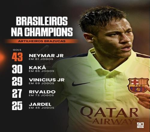 巴西欧冠射手榜前五名!看到榜单后才知道内马尔有多厉害