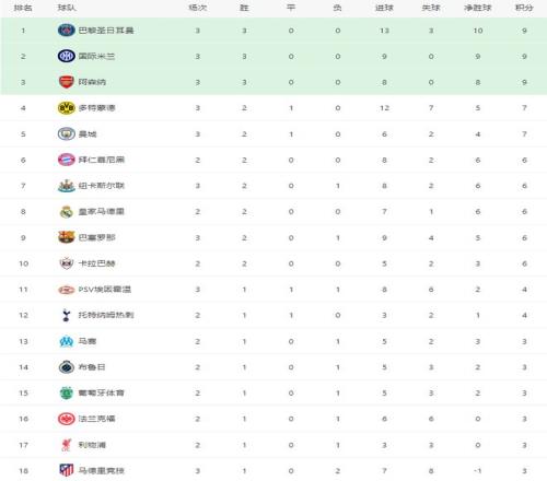随着巴黎72+巴萨61,阿森纳40马竞,欧冠最新积分榜:榜首易主