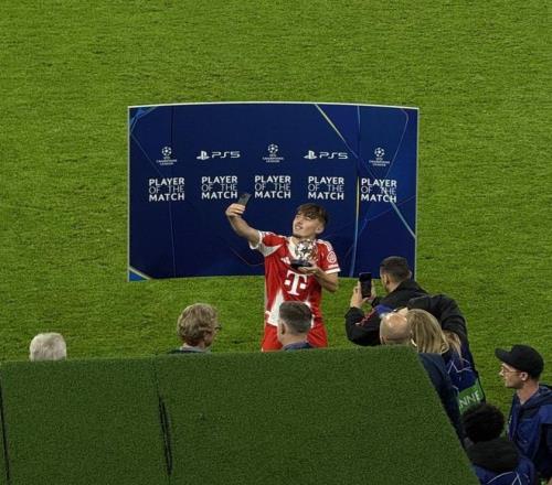 欧冠联赛阶段第三轮,拜仁慕尼黑主场4-0大胜布鲁日,此役为拜仁首开记录的17岁小将伦纳特-卡尔当选欧冠官方全场最佳球员。