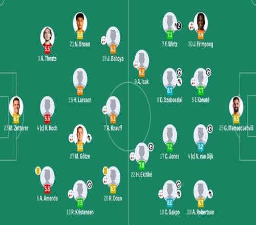【出场阵容】 利物浦首发:25-马马尔达什维利、30-弗林蓬(19'12-布拉德利)、4-范戴克、5-科纳特(74'2-戈麦斯)、26-罗伯逊、7-维尔茨、8-索博斯洛伊、17-琼斯、9-伊萨克(46'14-基耶萨)、18-加克波(74'10-麦卡利斯特)、22-埃基蒂克(74'11-萨拉赫) |