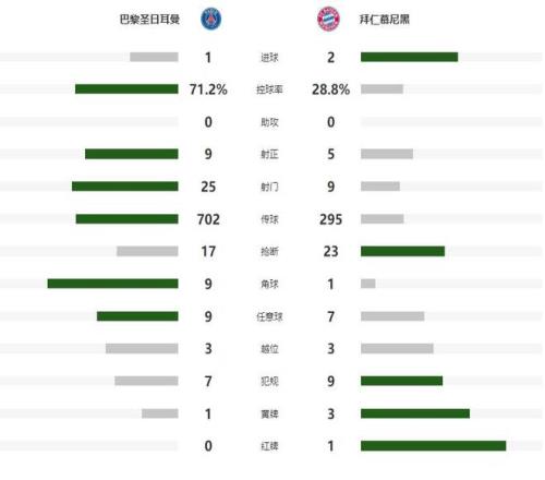 下半场人数占优的大巴黎,一上来就大举压上,给拜仁的后防施压,第49分钟克瓦拉茨赫利亚头球攻门太高,没有形成真正的威胁,随后诺伊尔拖延时间不开球,被主裁判出示黄牌警告。 第74分钟,奥利塞后场拿球被抢断,大巴黎顺势形成反击,李刚仁的传中,助攻内维斯侧钩破门,将比分追至1-2,不过接下来的时间,拜仁没有再给大巴黎机会,如愿将2-1的比分保持到了最后。