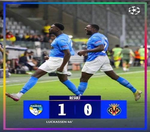 欧冠今夜见证历史,塞浦路斯球队帕福斯主场1-0战胜比利亚雷亚尔,欧冠新军取得了队史正赛首胜。 黄潜在技术统计上占据绝对优势,但18脚射门、5次射正都没能转化为进球,反倒被帕福斯利用角球,在第46分钟由卢卡森头球一锤定音。 本菲卡0-1勒沃库森