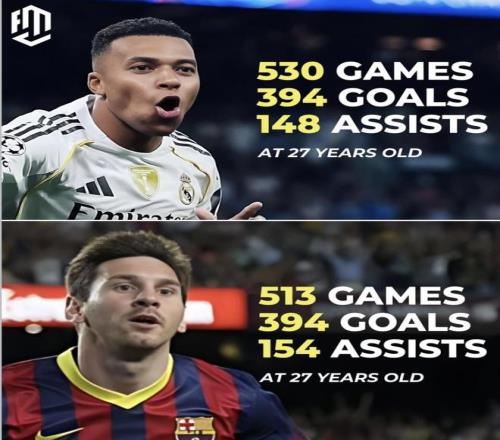两人27岁时数据对比姆巴佩(Kylian Mbappé) 国籍:法国(FRA) 27岁之前主要效力俱乐部:摩纳哥/巴黎圣日耳曼/皇家马德里 场次:530 进球数:394 助攻数:148 场均进球:0.743 场均助攻:0.279 场均进球+助攻:1.023