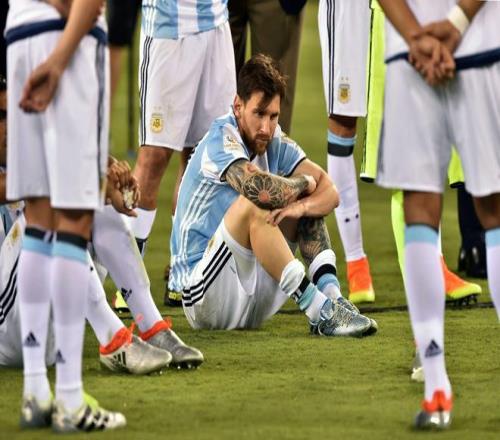 2016年6月26日,百年美洲杯决赛,阿根廷点球2-4不敌智利,连续三年大赛屈居亚军。梅西在点球大战踢飞了点球,赛后梅西坐在地上,心灰意冷,不久后宣布退出国家队。 盛世三连