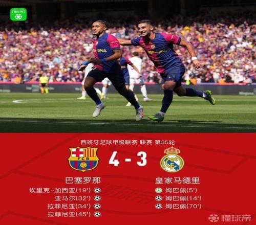 重点比赛千千万,但把你懂服务器干崩了的比赛属实少见。 西甲第35轮,巴塞罗那主场迎战皇家马德里,这场国家德比将最终给整个赛季的四次交手画上句号。前三次,巴萨分别在联赛客场、西超杯、国王杯三杀皇马。这既是尊严之战,也是皇马在西甲追赶巴萨的直接抢分机会。 比赛中,皇家马德里的姆巴佩表现出色,通过点球首开纪录后又连入两球,完成帽子戏法。巴塞罗那方面,埃里克-加西亚率先为球队扳回一城,随后亚马尔建功将比分追平。拉菲尼亚则在比赛中梅开二度,为巴塞罗那锁定胜局。最终,巴塞罗那以4-3战胜皇家马德里,全赛季四杀皇马。 比赛的跌宕起伏引起了众多球迷的讨论,但是由于参与人数众多,你懂的服务器一度被干崩,这也导致在统计十大战报时未能统计到这场比赛的真实热度值。