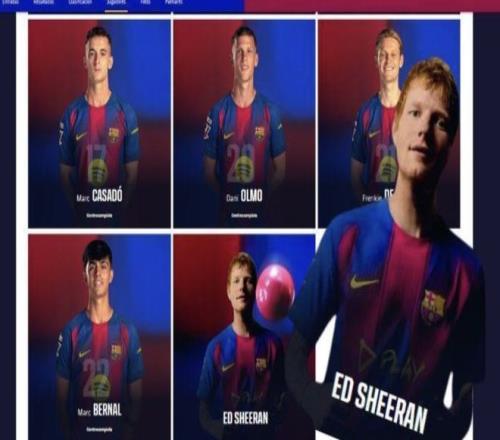 “新援”加盟!知名歌手艾德希兰现身巴萨官网阵容名单