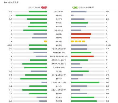 第67分钟,沃尔夫斯堡球员昆贝迪助攻岑特打入一球。 下半场补时第6分钟,法兰克福球员巴舒亚伊罚入点球。 球队阵容